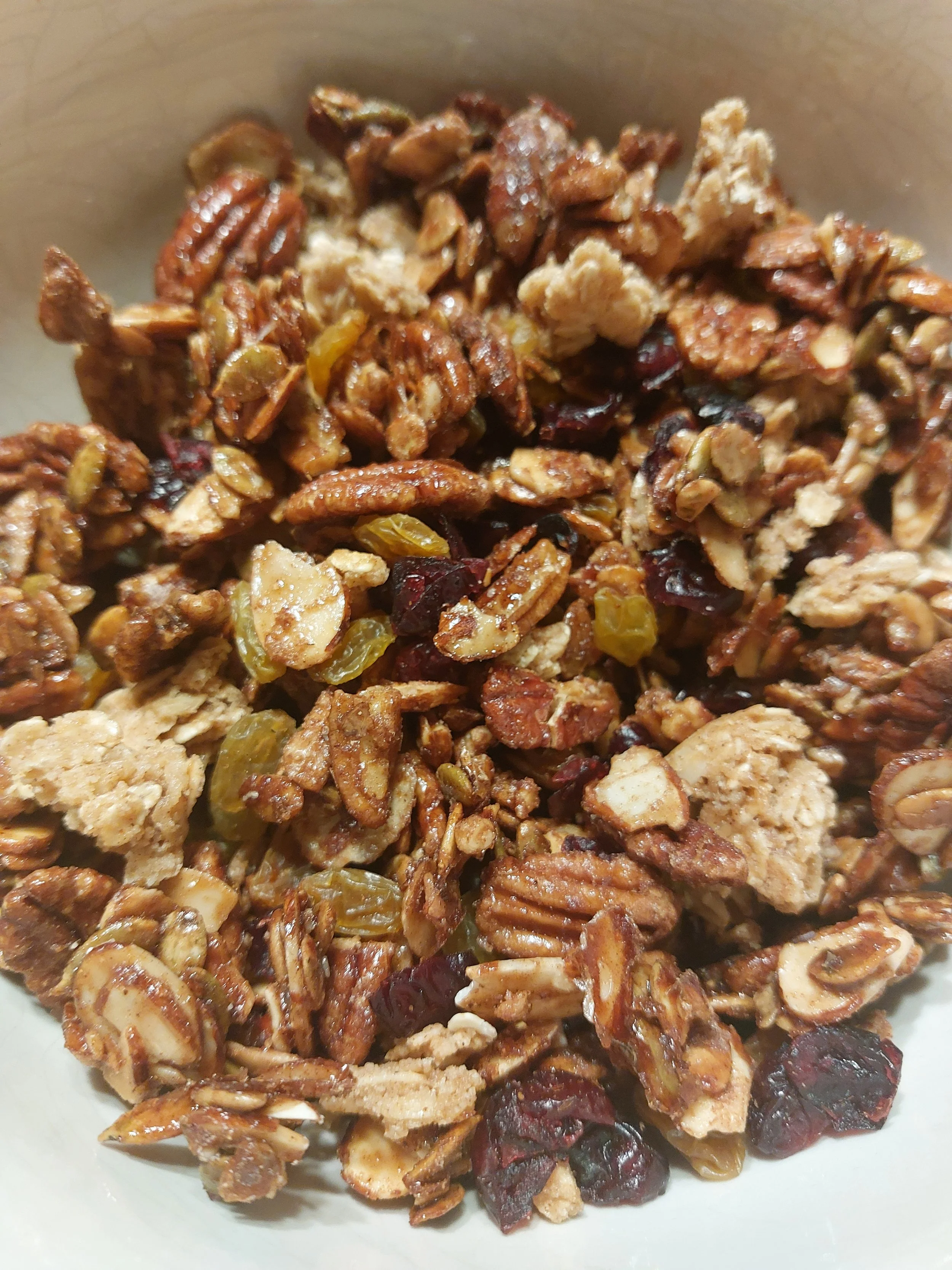 Handmade in small batches, this is the perfect combination of fall flavors - pecans, almonds, pepitas (pumpkin seeds), oat clusters, toasted with a pure maple, pumpkin spice glaze, tossed with dried cranberries and golden raisins. Seriously delicious, not too sweet, naturally gluten-free and a big hit last year!